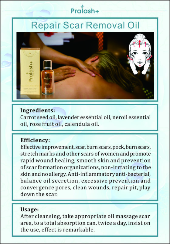 Usage: After cleansing, take appropriate oil massage scar area, to a total absorption can, twice a day. Insist on the use, then the effect is remarkable.